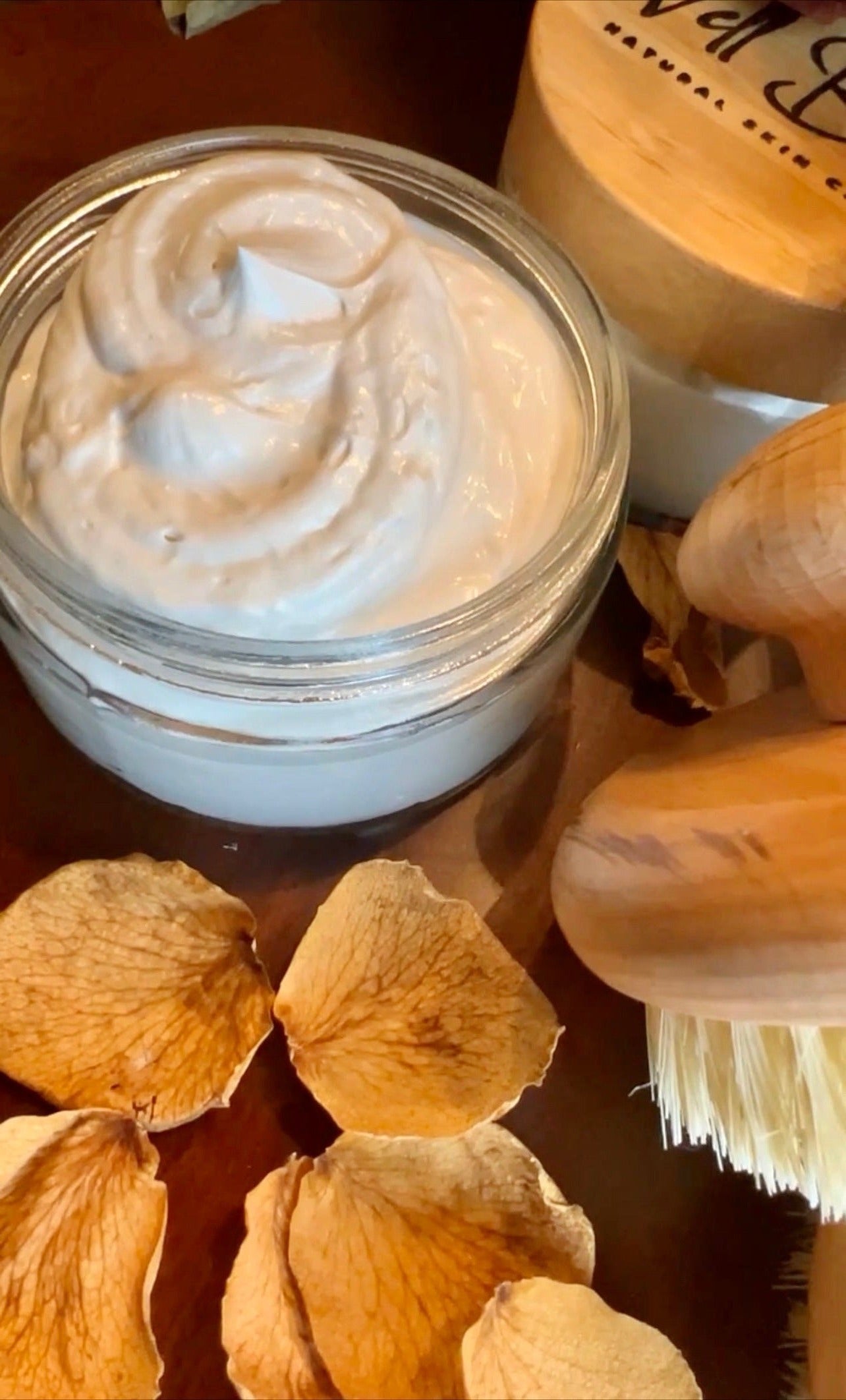 Our super hydrating skin nourishing, triple whipped Body Butter is infused with vitamin E, sunflower oil, salt lemongrass and hyaluronic acid red algae, to not only give you beautiful glowing skin, but to nourish it as well!